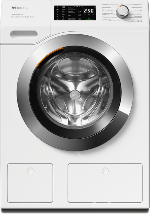 - 9.I utviklingsfasen av vaskemaskinene i serien W1 / W2 testet Miele modeller og kjernekomponenter med 5000 vaskesykluser (= 5 vaskesykluser per uke i 50 uker per år) i ulike programmer. Mer: miele.com/20years